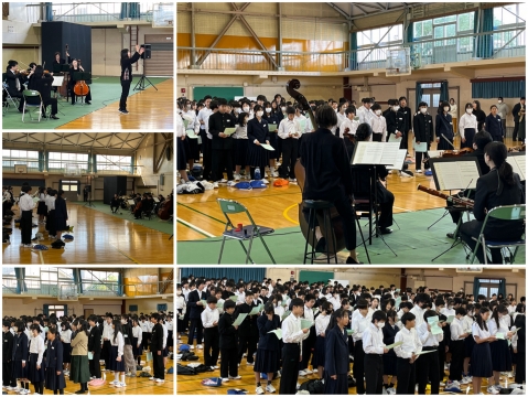 愛知室内オーケストラのみなさんが、中部中学校のために、はるばる来てくださりました。学び舎音楽会の開幕です。