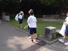 大四日市まつり後の清掃活動に中部中の子たちも参加しました。