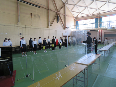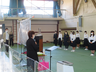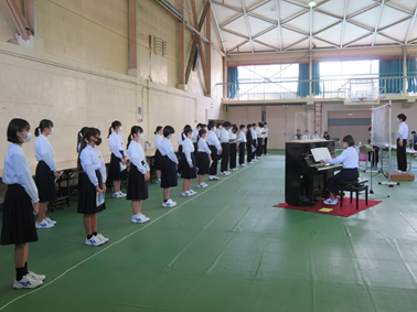 2年生の3.4限目は体育館で講師の服部先生に合唱指導をしていただきました。