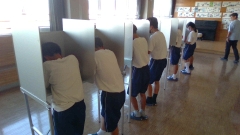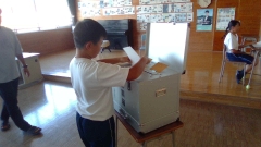 その後の投票は、実際の選挙で使われる記載台や投票箱を使って行われ、ほどよい緊張感の中で真剣に票を投じる姿がありました。