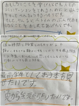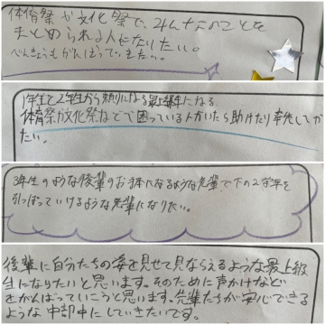 ワークスペースには、新3年生の決意が貼られています。