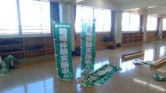 これから職場体験に臨む2年生。のぼり旗も作って、準備は着々と進んでいます。