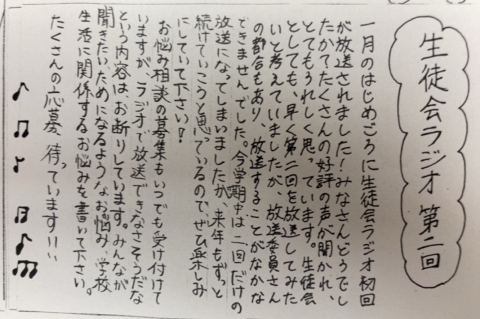 先週の金曜日、生徒会ラジオの第2弾が放送されました。