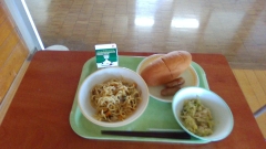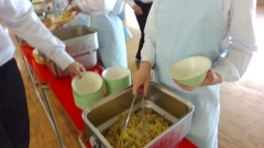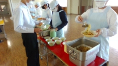 今日は和風スパゲティです。配膳が難しいメニューです。それでも手際よくやれています。