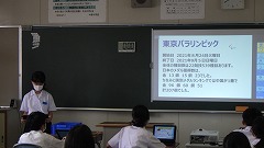 夏休みに調べたパラリンピックについてクラスで発表しました。ICTを用いて自分の意見を伝える力は、今後ますます必要になってくると思います。どの生徒もタブレットを上手に使って、自分の意見をまとめることができていました。発表後は投票し、各クラスの代表を決めていきます。