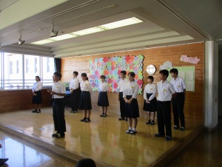 2年生では朝集会で認証式に先立って、前期執拗、後期室長からそれぞれ、挨拶をしてもらいました。中部中学校全員が生徒会員であるという自覚をもち、学校の中核を担ってほしいものです。
