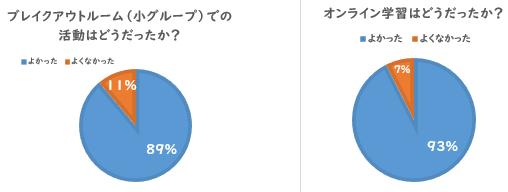 9月1日から実施されたオンライン学習が本日で終了します。本校では、よりよい授業にするために9月9日にオンライン学習とブレイクアウトルームの活動についてのアンケートを実施しました。結果は以下の通りです。