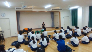 先ずは、ホールで5歳児担当の先生から「どうして保育園の先生になったのか」キャリア講演会をしていただきました。生徒は興味深々で、中学校の部活や高校、大学での様子を真剣に聞いて、質問できました。