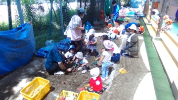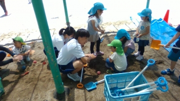 砂場は大人気で、お山やロケット、トンネル堀りや泥団子づくりと、幼児の想像力は全開でした。