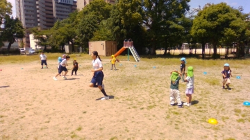 1歳から5歳に分かれて、今日は外遊びを中心に1時間ほど園児と過ごさせてもらいました。