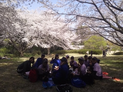 練習試合後、常磐中の裏にある吉田山の春の丘でお花見をしました。