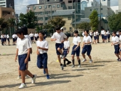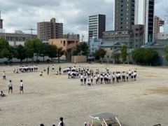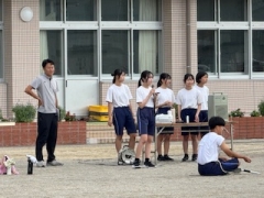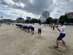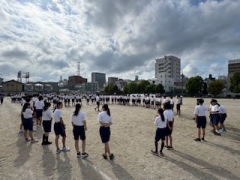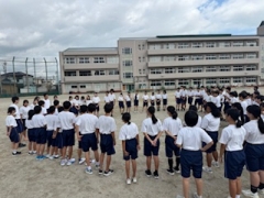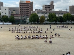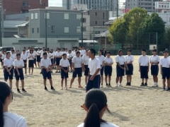 今日は1・2限を使って、全校で生徒会種目の練習を行いました。今年の種目は「大縄」「八の字」「駆け抜け」の3つです。ルールは生徒会役員が自分たちで考え、全校に提案してくれました。練習の前には、役員が前に立ち、1つ1つのルールを丁寧に説明し、わかりやすく進めてくれたおかげで、みんなが安心して挑戦することができました。 練習が始まると、3年生の頑張りが随所で光りました。大縄では「もう1回いこう!」「次は絶対飛べる!」と大きな声で仲間を励まし、リズムを合わせようと一生懸命に声をかけ続ける姿がありました。八の字では、1年生や2年生が少し不安そうにしていると、3年生が横に立って「大丈夫、タイミングはこうだよ」と優しく声をかけ、一緒に飛んで支える姿が見られました。そして駆け抜けでは、走り抜ける速さだけでなく、仲間を応援する声の大きさでも3年生が全校を引っ張り、まさにお手本となってくれました。自分たちで見つけた課題を先生と相談しながら、解決に向けてアイディアを出し合う姿は、いい光景でした。 生徒会が考えたオリジナル種目を、全校のみんなで挑戦する姿はとても新鮮で、笑顔と声援があふれる時間になりました。特に3年生の行動や声かけが全体の雰囲気を温かくし、「体育祭は一人ではなく、みんなでつくるもの」という思いを改めて感じさせてくれました。 体育祭本番に向けて、まだまだ練習は続きますが、今日のように互いを思いやり、全校で力を合わせることで、きっと大きな感動につながっていくはずです。3年生の頼もしさと、生徒会のアイデア、そして全校の笑顔が1つになった今日の練習は、体育祭物語の新しいページを彩る、あたたかな一日となりました。