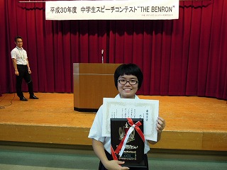中学生スピーチコンテスト あっぱれ最優秀賞獲得
