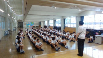山口先生からは、夏休みまでの過ごし方についてのお話がありました。身の回りの整理整頓や言葉遣いについて、まずは気を付けていきましょう。