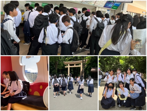 上:舞浜駅切符売り場。他校も含め、出発する中学生で大混雑。