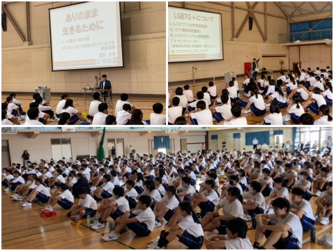 本日6時間目に、渡部 京李さん(NPO法人 LGBTの家族と友人をつなぐ会 東海理事)を講師にお招きして、人権講演会を行いました。本校のPTA教養部が主催し、中部地区人権教育推進協議会が共催となっています。 テーマは、「ありのまま生きるために」。本校にぴったりのテーマでしょ。