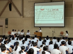 本日、「Beautiful special skill time」略してBSTが開催されました。まさに先生と生徒のみなさんが共にキャストとして、見事に作り上げた取り組みだったと思います。これまで1学期に取り組んできた中で、何度も教育ビジョンに書かれている[自律・協生・創発]とむすびつけて考えてくれました。そこから生まれてきたキーワードは、どれも身近なものに繋がっていました。そこに気づけた発表者の素直な思いは聞いている生徒の皆さんだけではなく、我々先生たちも自分を見つめることができました。本当にありがとう。 今日は、保護者の方に加え、四日市市教育委員会から教育監をはじめ、たくさんの方に視察に来ていただきました。本校の自律的活動を視察していただきました。セントラルな中部中として、本校ならではの取組を見ていただきました。今回の取組を次の目標に繋げるため、みんなで教育ビジョンを達成させるために共に励みましょう。