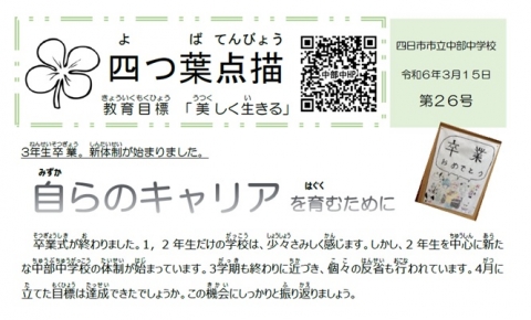 今回は、卒業式と1,2年生のキャリア学習の取り組みについて報告します。