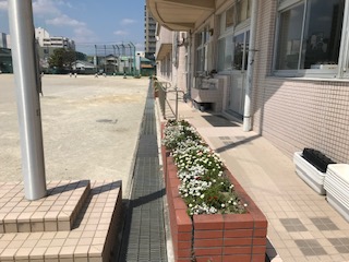 有志の先生方が校舎南側の花壇で栽培してくれている花がとても綺麗に咲いて,