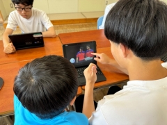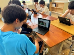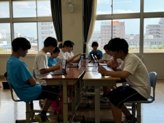 卓球部の活動場所も、放課後になると大変蒸し暑くなってきました。キャプテンと相談して教室に移り、暑さをしのぎながら、各自が今の自分に足らないところをお互い出し合って、個々やペアで課題解決のための動画を見る時間を作りました。