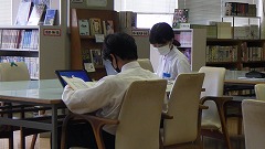 図書室の本やタブレットを使って調べたことを、タブレットにまとめて発表します。教室でも図書室でも、熱心に調べています。どのような発表になるのか楽しみです。