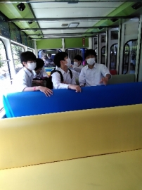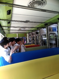ケニア号にのって動物を見に出掛けます。記念撮影に応じて、ガオ~ポーズです。