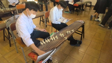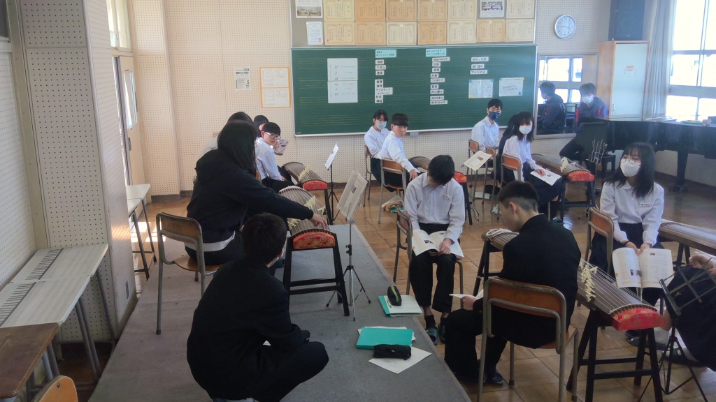 音楽室に行くと、1年3組がお琴の授業をしていました。