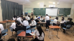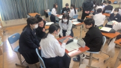 1年生の教室からはたくさんの声が・・・。教室をのぞくと自分が作った夢地図についての発表会中。今の自分が興味あるもの、好きなこと、なりたい自分、広げていきたい世界などを自分の言葉で語っていました。自分のことを話すっていうのは少し照れますね。でも、1年生、しっかりと話し、しっかりと聞けていました。なりたい自分に向けて進むことも大事だけど、そんな自分を受け入れようとしてくれる雰囲気っていうのもなんだか心が温まりますね。入学して1年。月日が流れるのってはやいなぁと実感しました。