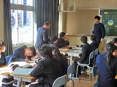 四日市市教育アドバイザーの倉田さんに来校いただき、1年生の数学科の授業を参観後、助言をいただきました。このような研修を重ね授業力のさらなるアップを図っていきます。