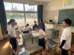 また、演説会の裏側では、準備や進行、開票作業までを子どもたち自身が担いました。役割ごとに責任をもって取り組む姿には、自主性と協働の大切さがあらわれていました。特に、緊張感のある中で正確に開票作業を進める様子は、大人顔負けの真剣さでした。