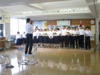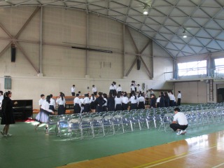 本日より11月2日の文化祭の合唱に向けて各クラスの取り組みが本格的に始まりました。6限目には3年生が体育館に舞台設営を行いました。その後、体育館、多目的ホール、各階ワークスペース、音楽室、各教室で練習しました。どのクラスも一生懸命に取り組んでいました。聴く人にもっと感動が与えられるような合唱をつくっていきましょう。なお、10月27日(土)には合唱のリハーサルを全校で行います。