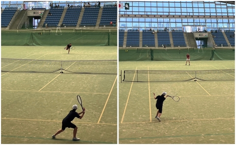 今日は、硬式テニスの大会に藤田さんが出場です。