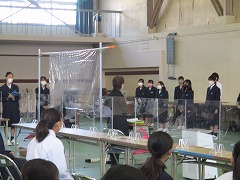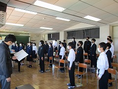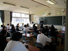 1,2限目に合唱コンクールに向けて外部講師の服部佐喜子先生に指導をしていただきました。それぞれの学級が歌った後、声の出し方や指揮の工夫、歌いだしのタイミングなどについてアドバイスを受けました。生徒の皆さんは、楽譜にメモを取ったりしながら真剣に取組んでいました。
