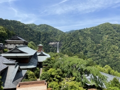 歩いた疲れを吹っ飛ばして、那智の滝で楽しんでいます。