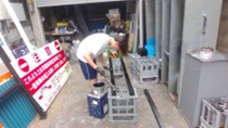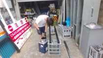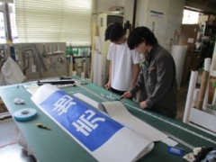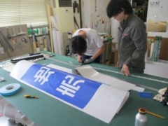 資材に塗装をしたり、カッターナイフを使って、素材の形を整えたりしています。