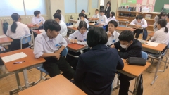 午前中には「メディアリテラシーと人権」と題して、人権・同和課の荻田先生からお話しいただきました。「どのクラスもとてもよく話を聞いてくれてうれしかった」と言っていただきましたよ。「誰かを傷つけないために自分にできること」を考えて、誰もが安心して過ごせる学年をまた創っていきたいですね。