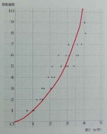 実は、運動エネルギーは速さの2乗に比例するという関係があります。 なかなか良い実験結果がでなくて残念でしたが、身の回りにはたくさんの二次関数があることを知り、数学への興味関心を深めてほしいと思います。
