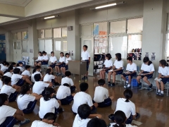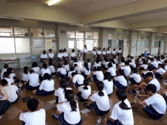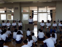 事前に各クラスで全員がスピーチを行い、選出された代表3名(全12名)が自分が思う行ってみたい場所、その理由について学年全体の場でスピーチしました。学年代表に選ばれた4名は終業式にてスピーチ発表を行います。話し方や声の大きさだけでなく、聴く人に伝えようとする気持ちも意識していきましょう。