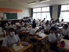 ※スピーチ発表後、夏休みのしおり綴じ&記入を行いました。計画的に夏休みを乗りきりましょう❗