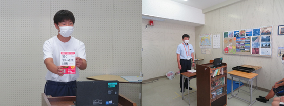 2学期最後の集会は、新型コロナウィルス感染拡大防止や暑さ対策、生徒の健康面等を考慮してリモートで行いました。