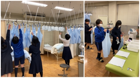 生徒:「しわにならないように、たたむんですよね。」