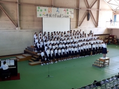 諏訪太鼓の迫力ある演奏でオープニングを迎え、その後、各学年・クラスの合唱を行いました。学年やクラスによって良さがあり、聴いている人を魅了させる合唱でした。特に3年生の力強く、美しい歌声の合唱は会場を一際、感動させてくれました。