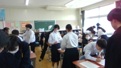 今日の6限目、各クラスで「じゃんけん大会」を行いました。クラスの仲間全員や先生とコミュニケーションを取りながら「じゃんけん」。自分から声を掛けにいく。新しいクラスになってからまだ話をしたことがなかった人も少しつながることができました。相手の話をしっかりと聞こうとする姿、まだじゃんけんをやっていない人を探す姿、笑顔、頭を抱える姿、たくさんありました。この「じゃんけん大会」がいい時間になったのは、みんなが楽しもうと思う心があったからかなと思います。