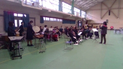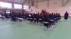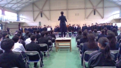 吹奏楽部の演奏、卒業生の呼名、卒業歌の合唱。