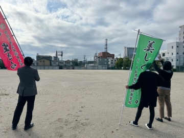 学校に戻り、グラウンドからみなさんが乗る列車にアピールタイム!しっかり見てくれたかな?学校からもみなさんの素敵な旅行を応援してますからね!