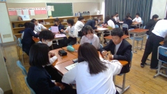 今日の学活では、「どんな学年にしていきたいか?」を考えました。はじめに室長さんから「1年生の反省」と「学校で大切にしているキーワードの確認」があり、それを踏まえて班で話し合いを行い、最後にクラス全体で交流しました。アドジャンと同じように、全員がひとつは自分の考えを伝えられていて、和気あいあいとしたいい雰囲気でした。