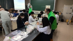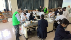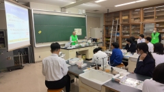 続いて、企業OB人材センターの方々による「バスボムづくり体験」では、身近な材料を使って自分だけの入浴剤を作る活動を行いました。色や香りを工夫しながら、楽しみつつも科学的な視点を学ぶことができ、ものづくりの奥深さを実感する貴重な機会となりました。