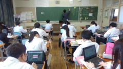 2年生ということもあって、中学校の授業には慣れた雰囲気です。先生の話をしっかりと聞く姿、先生の問いかけに対し自分の考えを巡らす姿、ICTを活用しならが自分や仲間の考えを共有する姿、新しいことに挑戦する姿、様々な姿が見られます。