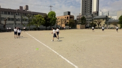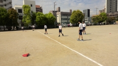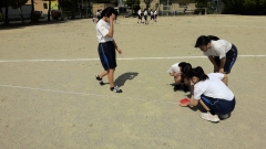 今日はハンドボール投げの授業でした。みんなで協力して取り組んでいます。