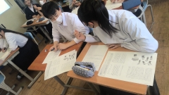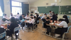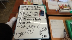 難しいお題にチャレンジです。班を中心に、クラス全体で話します。